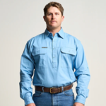 KILCOY | Mens Half Button Long Sleeve Work Shirt - Sky Blue OBCMWS001-SKY